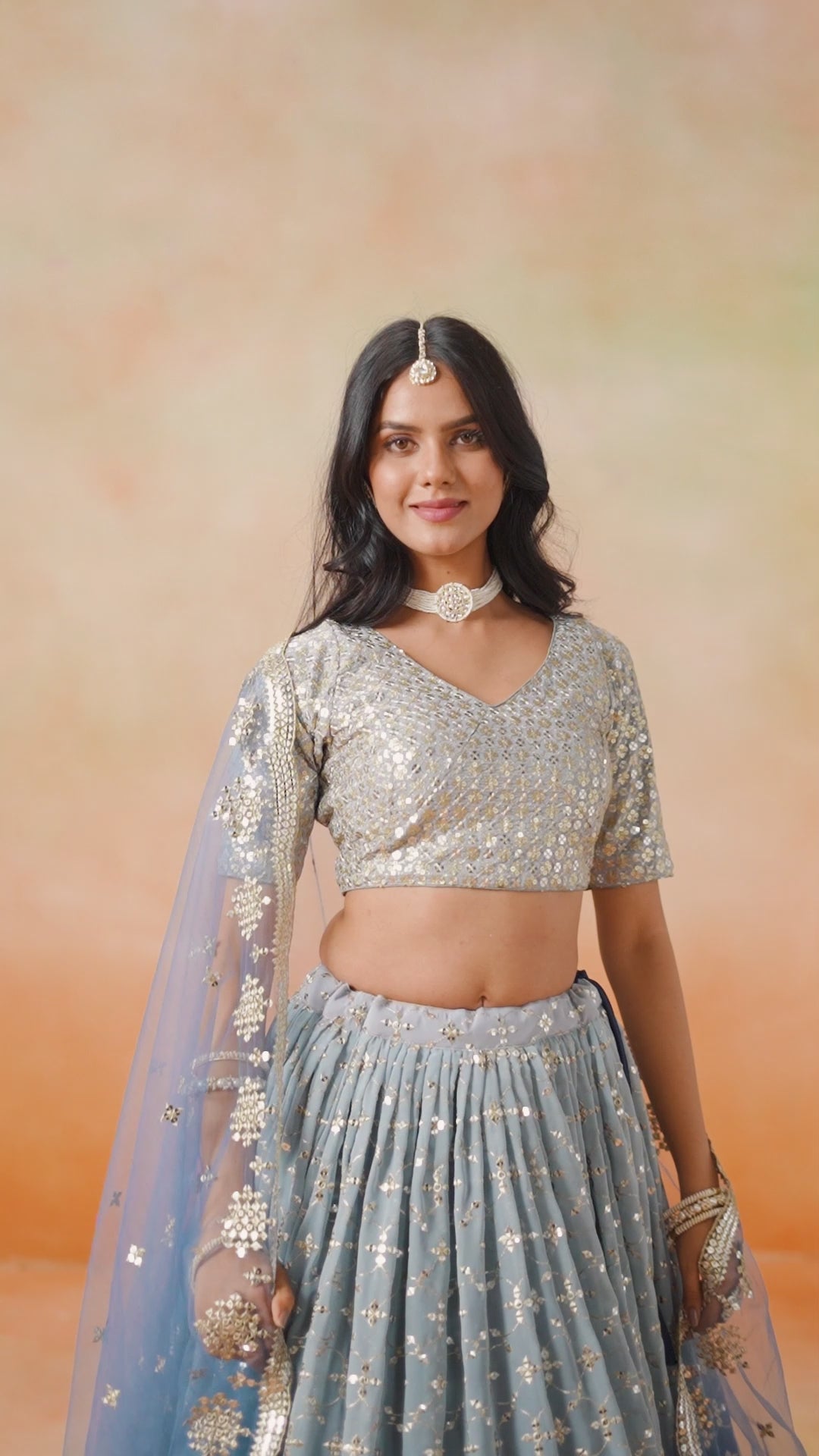 Elegant White & Blue Sequins Chinon Festive Wear Lehenga Choli