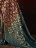 • Elevate your festive look with this exquisite traditional brown silk saree featuring stunning patola print work and intricate zari weaving.