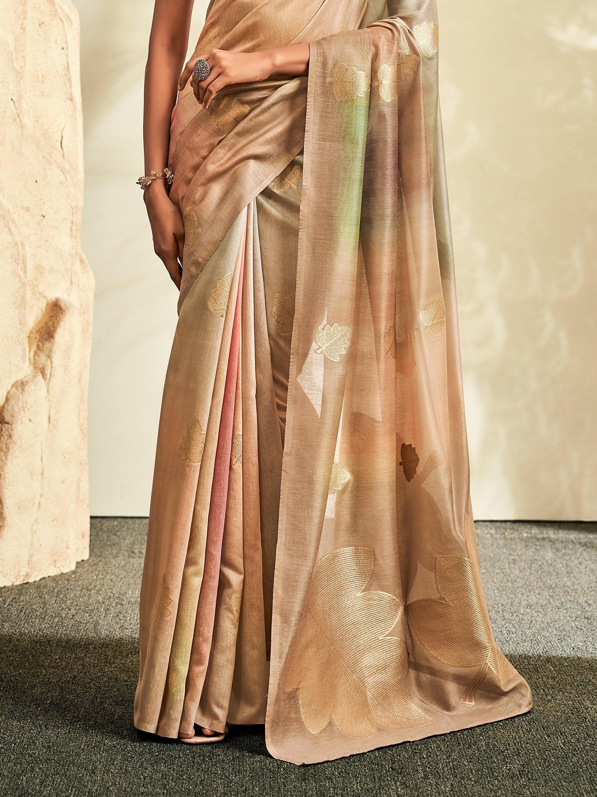 • Elevate your ethnic wardrobe with our exquisite adorable brown threadwork silk saree festive wear with blouse.