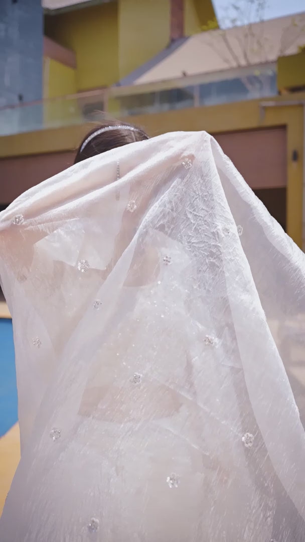 • Radiate grace and elegance in this exquisite white organza lehenga set, designed to captivate at every celebration.