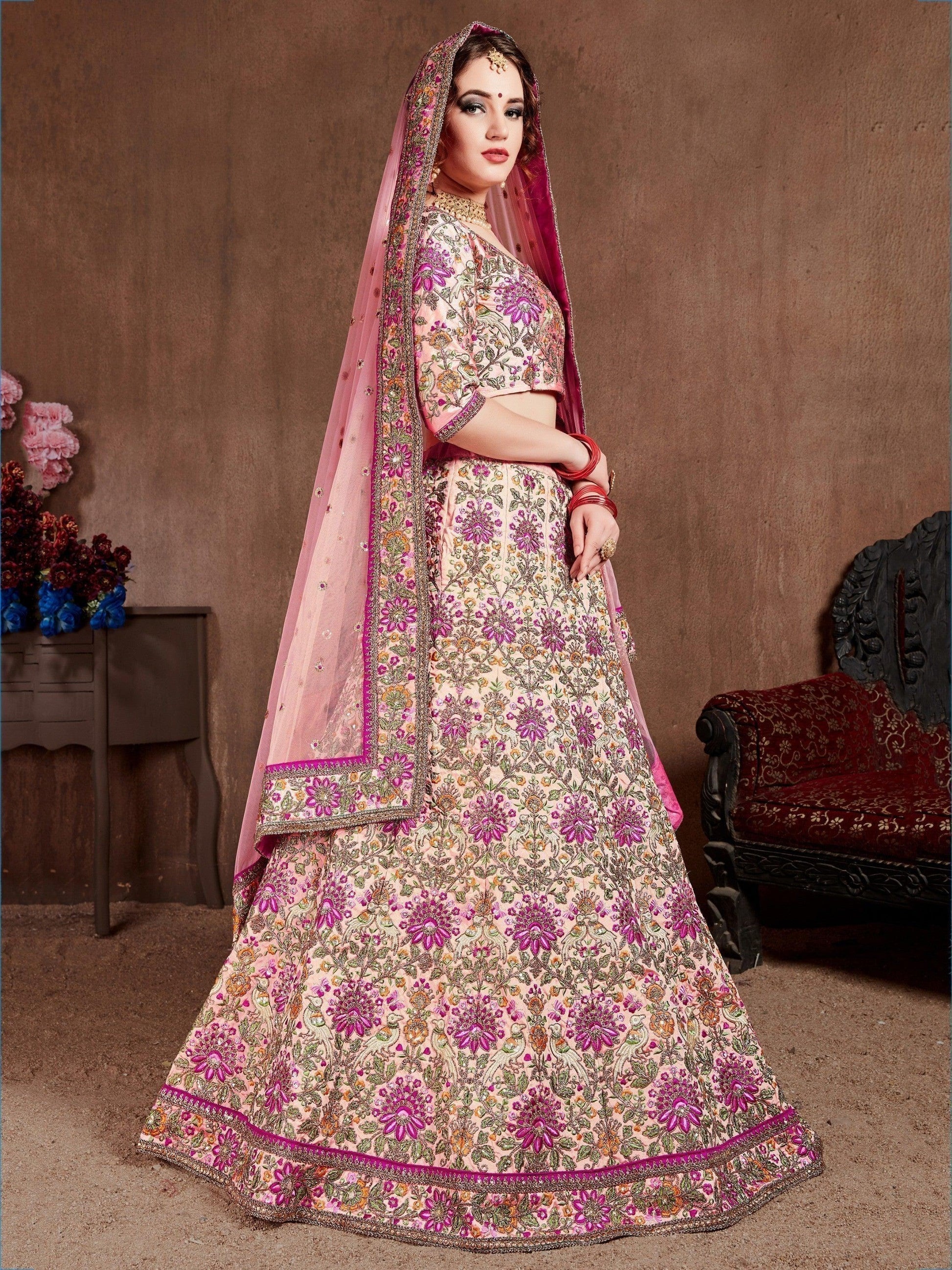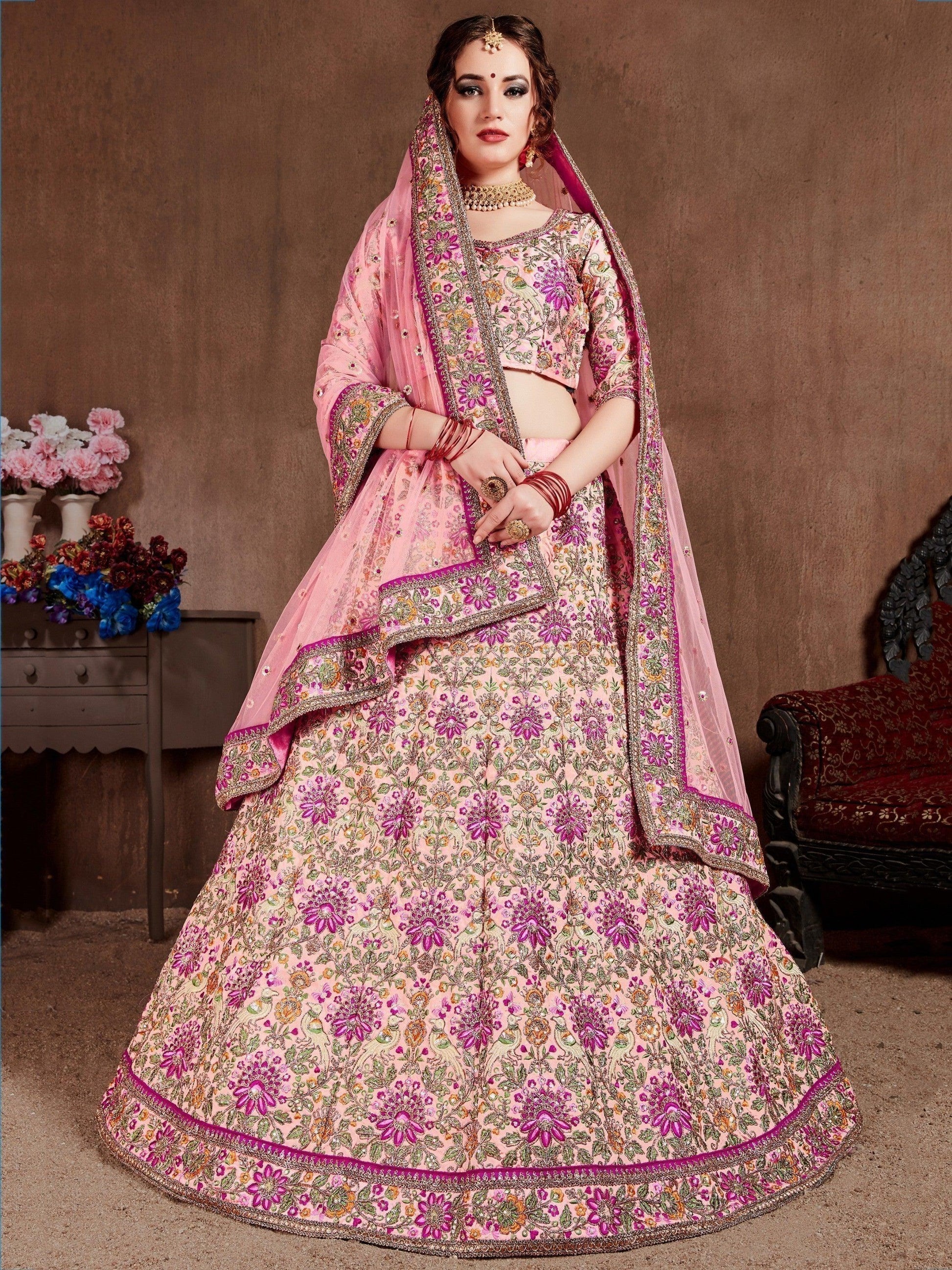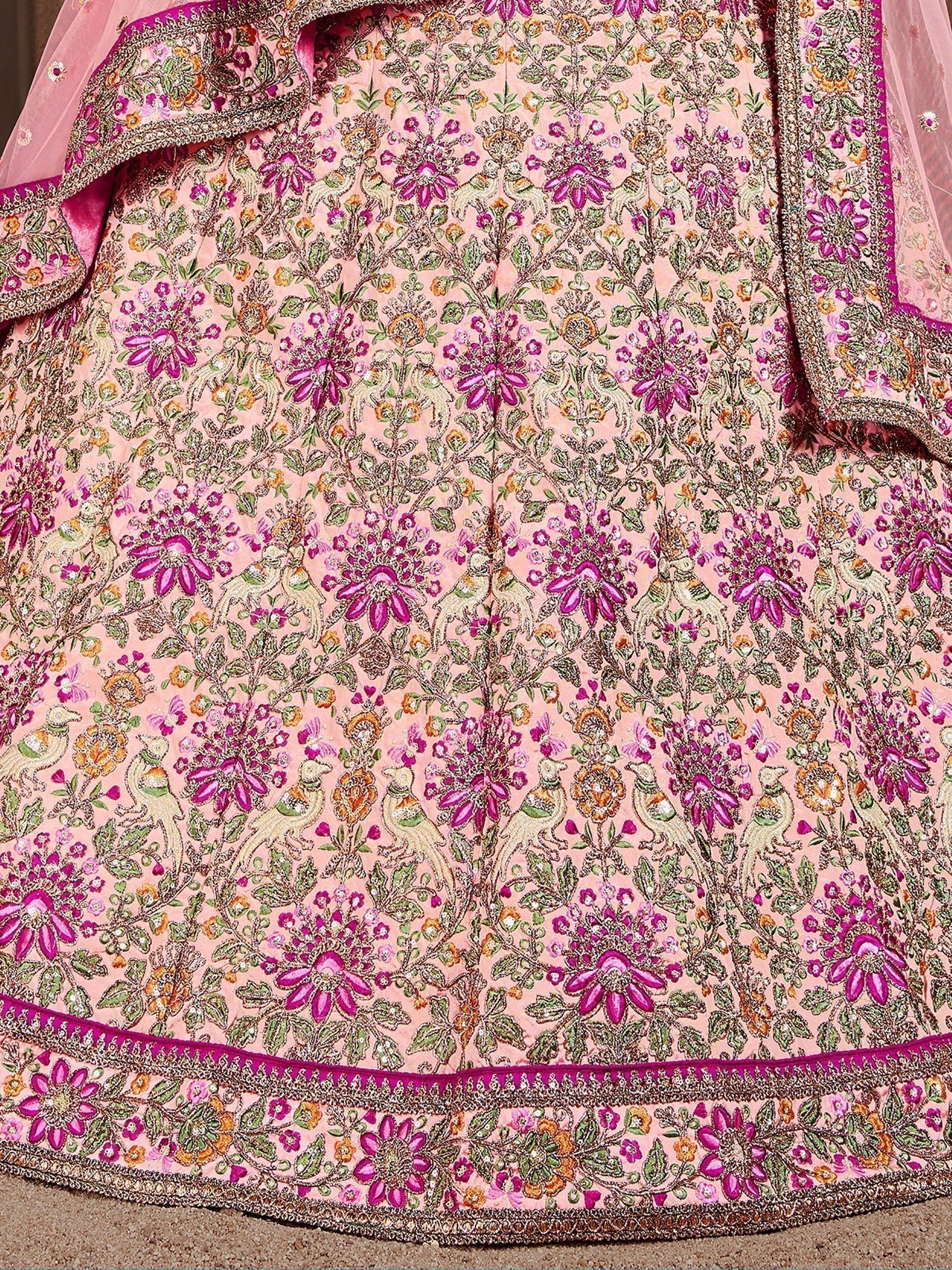 • Elevate your bridal look with our exquisite "arresting pastel pink colored bridal wear designer embroidered lehenga choli."