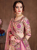 Arresting Pastel Pink Colored Bridal Wear Designer Embroidered Lehenga choli