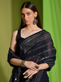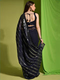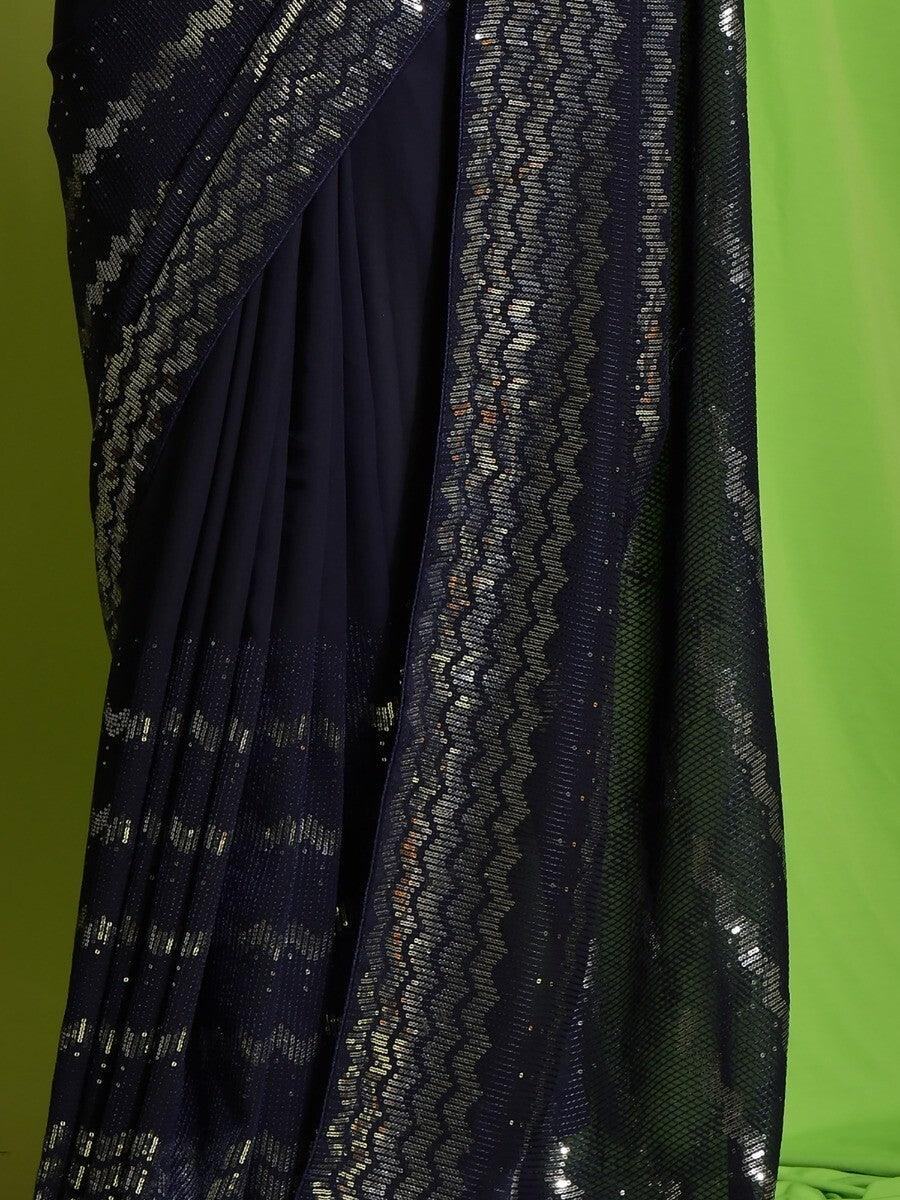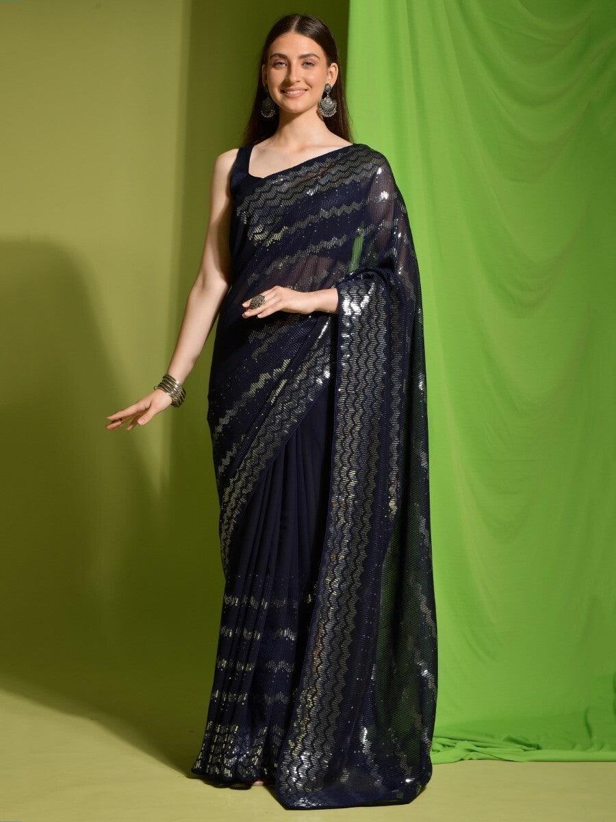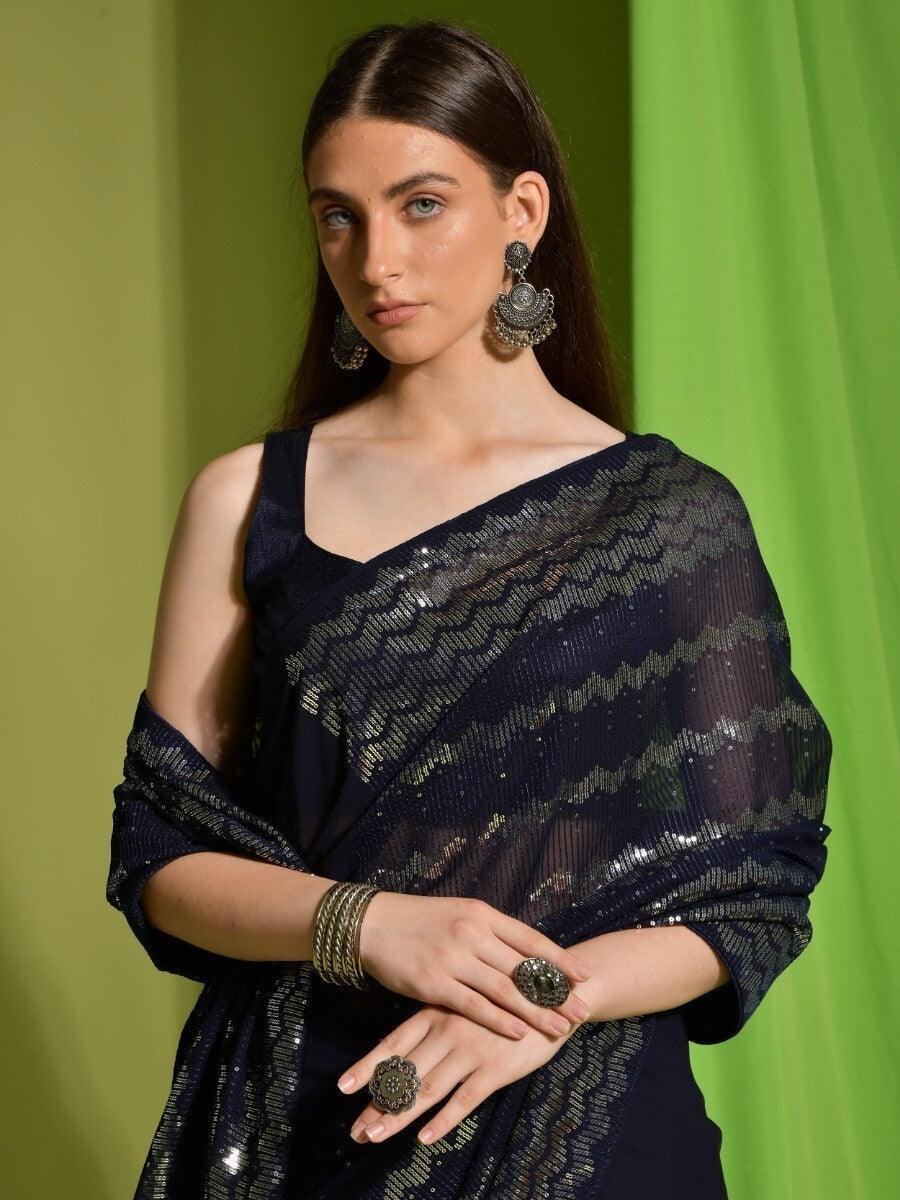 Astonishing Navy Blue Sequins Georgette Engagement Wear Saree With Blouse
