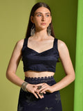 • With a length of 5.50 meters, this saree provides ample fabric to drape elegantly. The unstitched blouse allows for customization according to your preferences. The dark blue saree is paired with a contrasting blouse, featuring intricate sequin work. The matching belt adds a touch of glamour to the overall look.