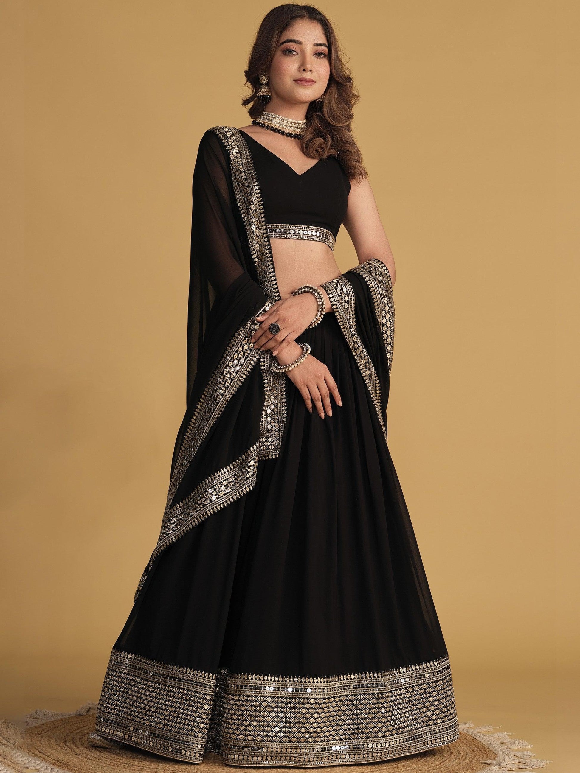 • Don't miss out on the opportunity to own this stunning attractive black embroidered georgette party-wear lehenga choli. It is a truly exquisite piece that embodies tradition and elegance. Elevate your style and make a lasting impression at your next special event with our outstanding lehenga choli.