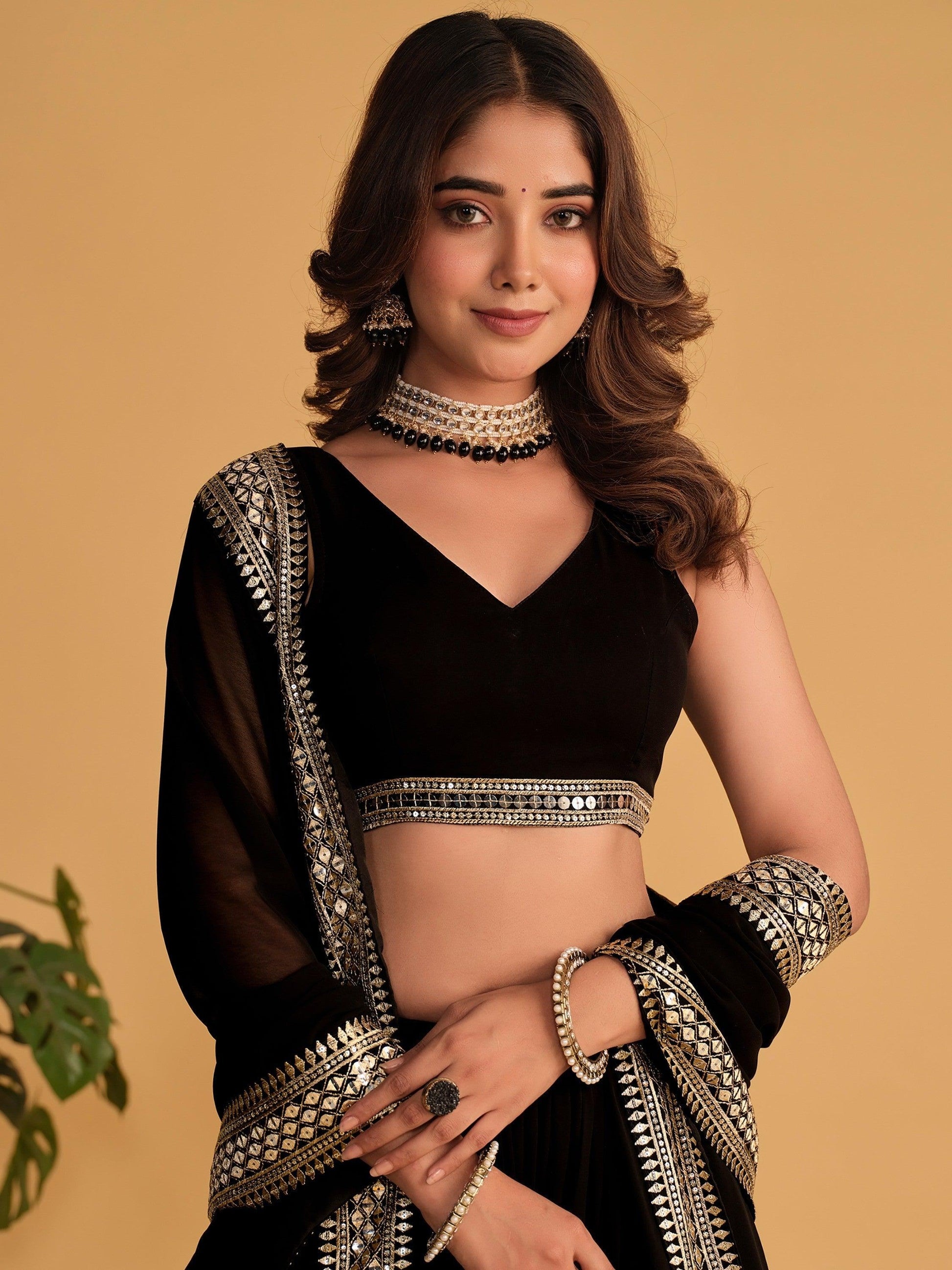 Attractive Black Embroidered Georgette Party Wear Lehenga Choli
