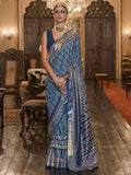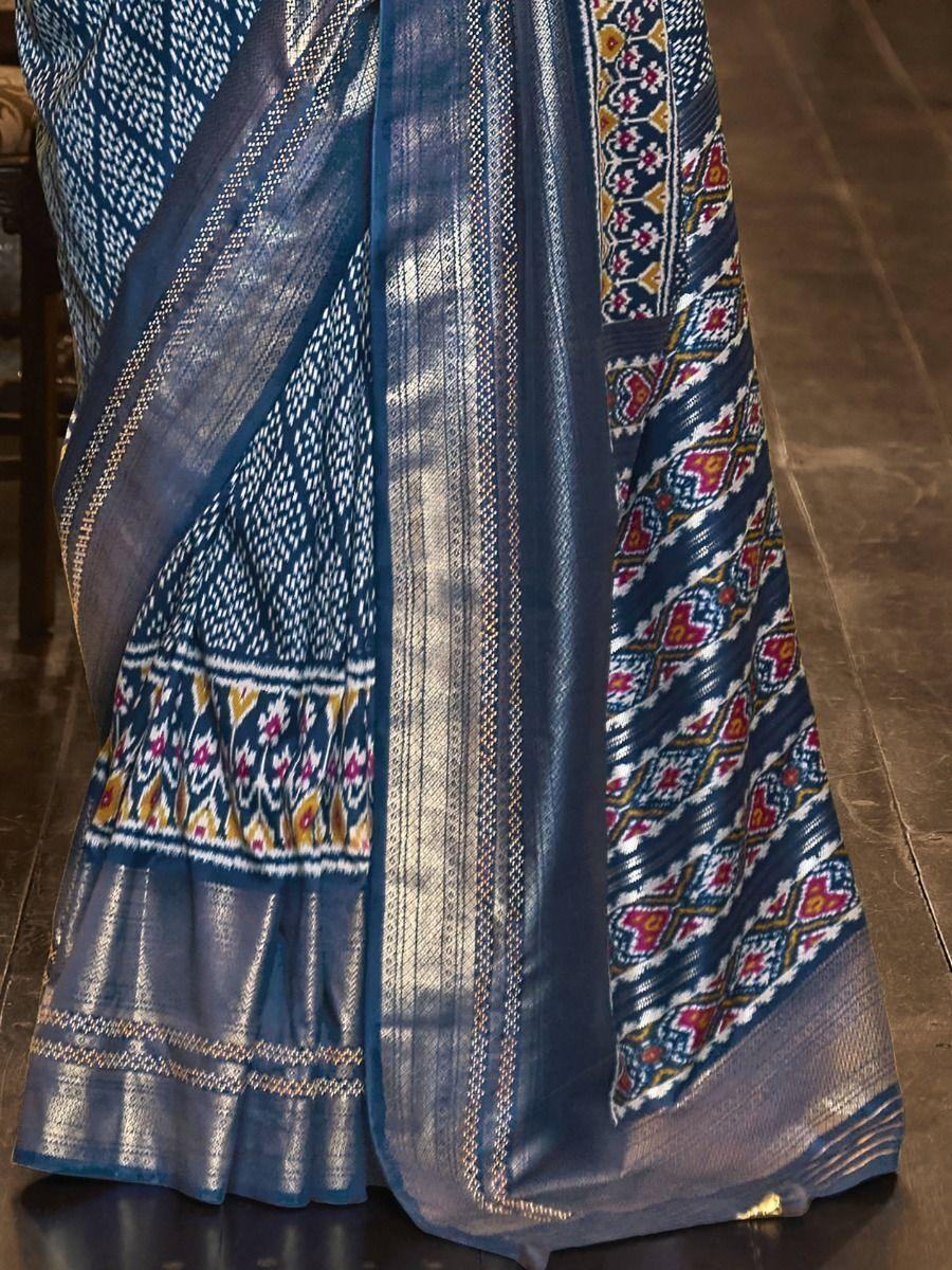 Attractive Blue Printed Patola Silk Festival Wear Saree With Blouse