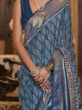 • The blue blouse is also embellished with silk material with printed work, making this saree a complete package.