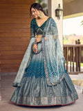 • Don't miss out on this exquisite piece from Zeel Clothing. Purchase the awesome teal blue sequins chinon sangeet wear a lehenga choli with a dupatta online and add a touch of luxury to your ethnic wear collection.