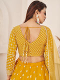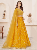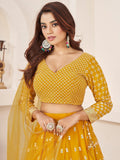 Beauteous Yellow Thread Work Georgette Lehenga Choli With Dupatta