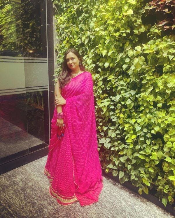 • Introducing our beautiful pink lahariya print georgette sangeet wears lehenga choli! This stunning pink lehenga is adorned with delicate lahriya print and exquisite Gotta patti lace work, creating a captivating ensemble.