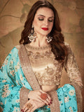 Beautiful Sky Blue Sabyasachi Floral Digital Printed Organza Party Wear Lehenga Choli