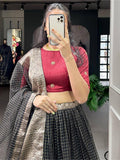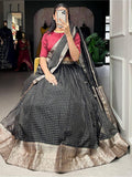 Dazzling Black Zari Weaving Organza Traditional Lehenga Choli