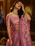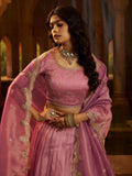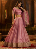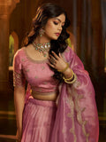 Dazzling Pink Dori Work Organza Engagement Wear Lehenga Choli With Dupatta