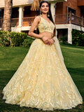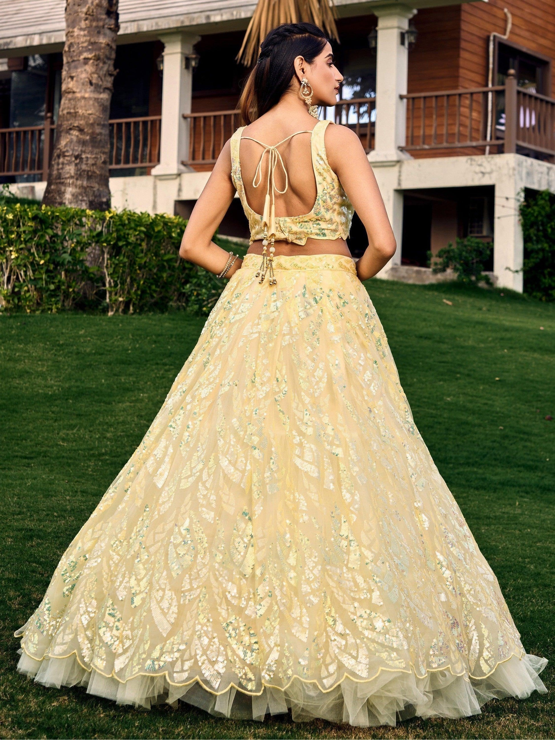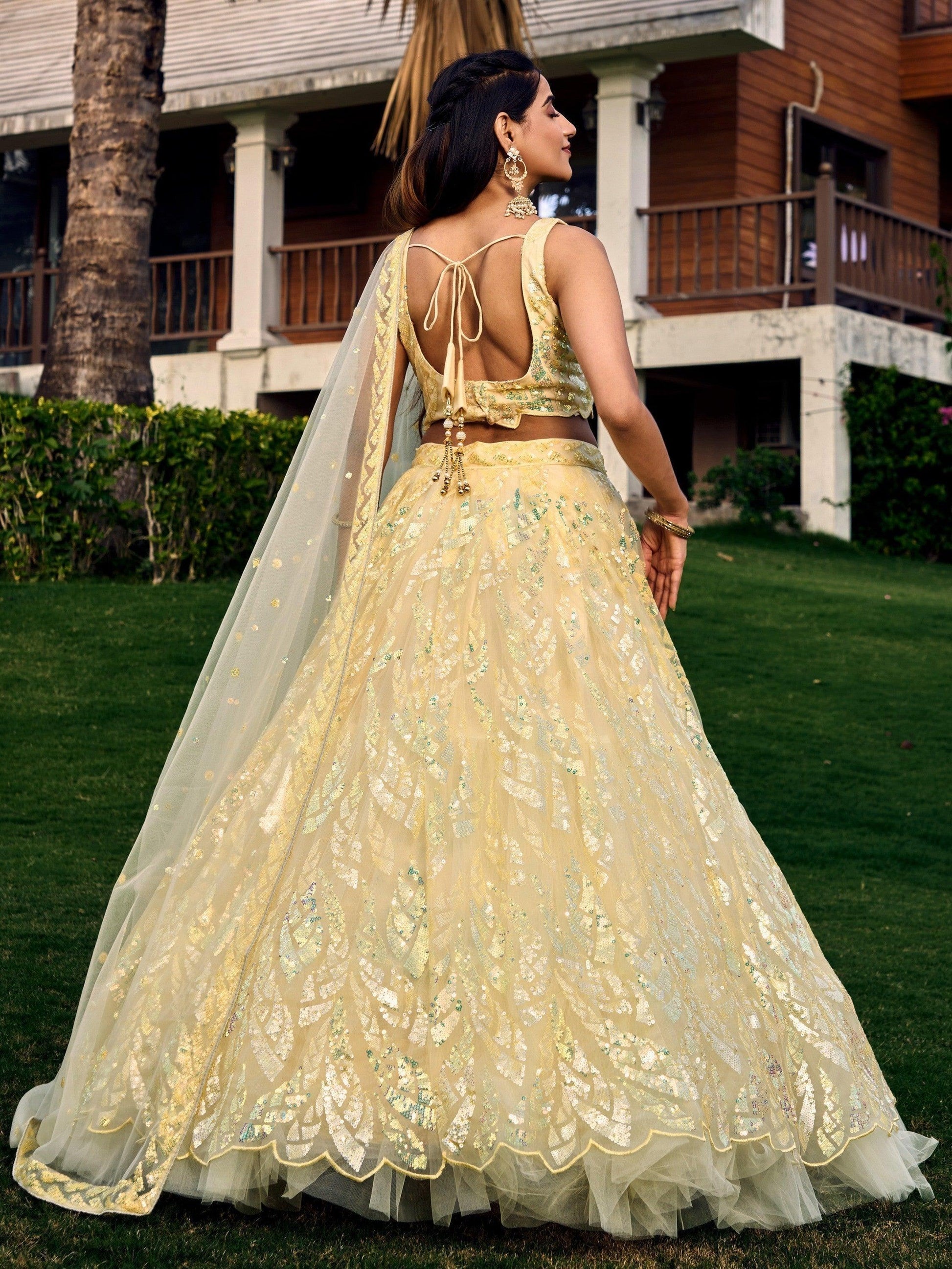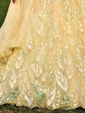 • Get ready to shine at your next special occasion with our excellent yellow sequins net haldi wear lehenga choli with dupatta.