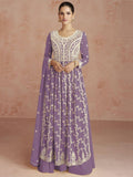 Fabulous Purple Embroidered Georgette Festival Wear Palazzo Suit