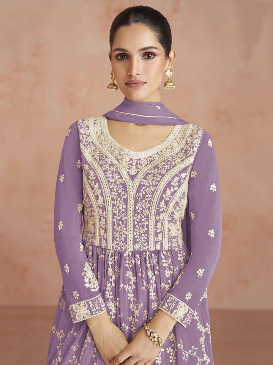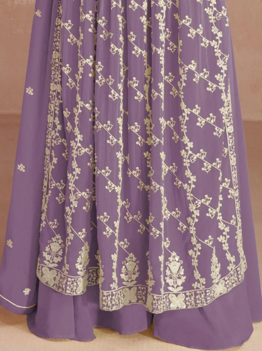 • Introducing our fabulous purple embroidered georgette festival wear palazzo suit, a stunning addition to your wardrobe that is perfect for any special occasion. From weddings to festivals, receptions, and events, this suit is designed to make you stand out and feel confident.