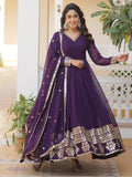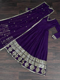 Fabulous Purple Sequins Georgette Festival Wear Gown With Dupatta