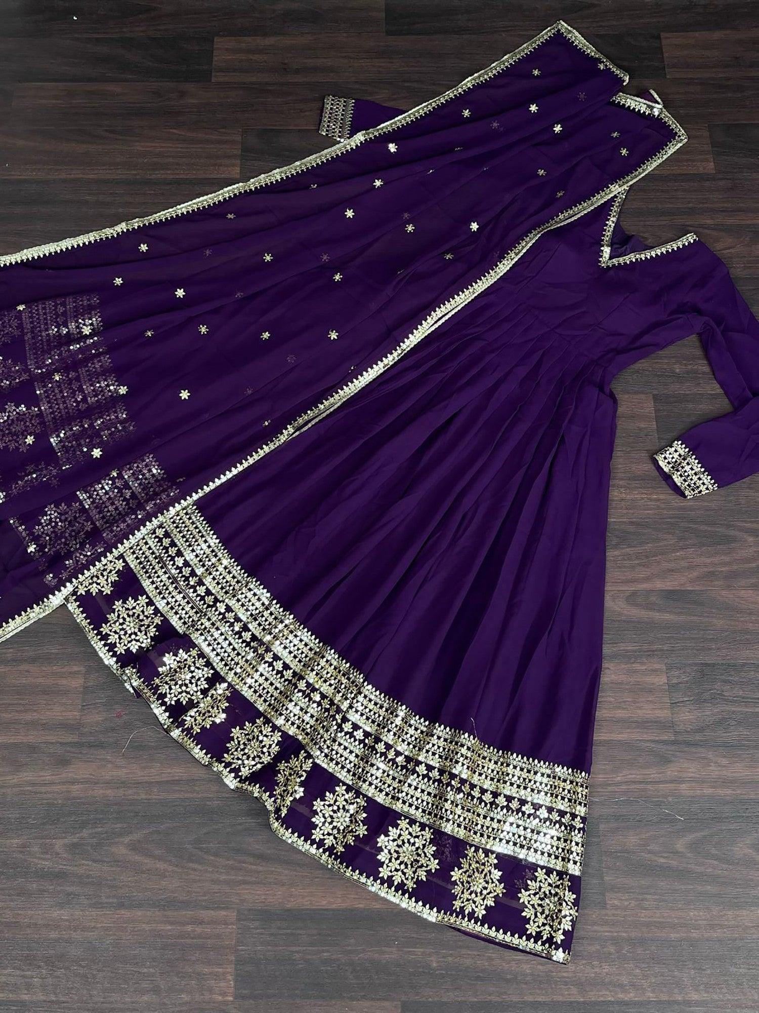 • This purple sequins georgette festival wear gown with dupatta is a must-have in your ethnic wear collection. With its beautiful design, high-quality georgette material, and intricate work details, this gown is sure to elevate your style and make you feel like a queen.