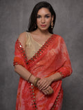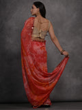 • The fantastical red digital printed georgette saree with blouse is a premium quality attire that combines the timeless beauty of georgette fabric with intricate digital print work and mirror work.