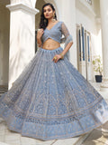 Fascinating Light Blue Thread Work Net Designer Lehenga Choli