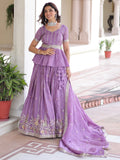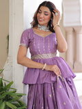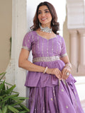 Gorgeous Lavender Sequins Work Crushed Bridesmaid Lehenga With Peplum Top