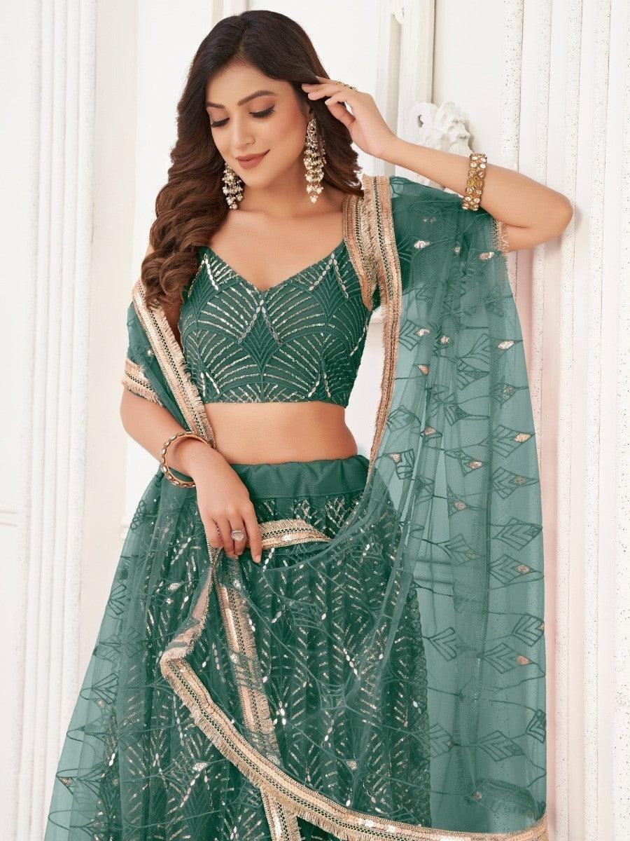 Impressive Green Sequins Net Traditional Lehenga Choli With Dupatta