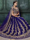 • Upgrade your ethnic wardrobe with our impressive navy blue colored designer partywear raw silk lehenga choli.