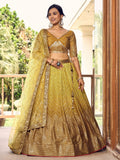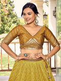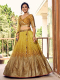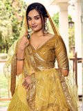 Incredible Yellow Sequins Chinon Haldi Wear Lehenga Choli With Dupatta