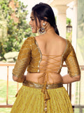 • renched in the vibrant hues of yellow, this chinon material lehenga choli set is a dazzling embodiment of traditional charm and contemporary elegance.