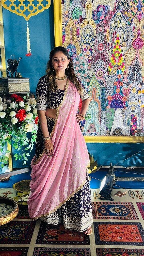 • With its rich purple hue and delicate pink contrast, this wedding lehenga is an ideal choice for brides and wedding attendees. The luxurious fabric, intricate detailing, and elegant drape make this ensemble a timeless and captivating addition to any bridal wardrobe.
