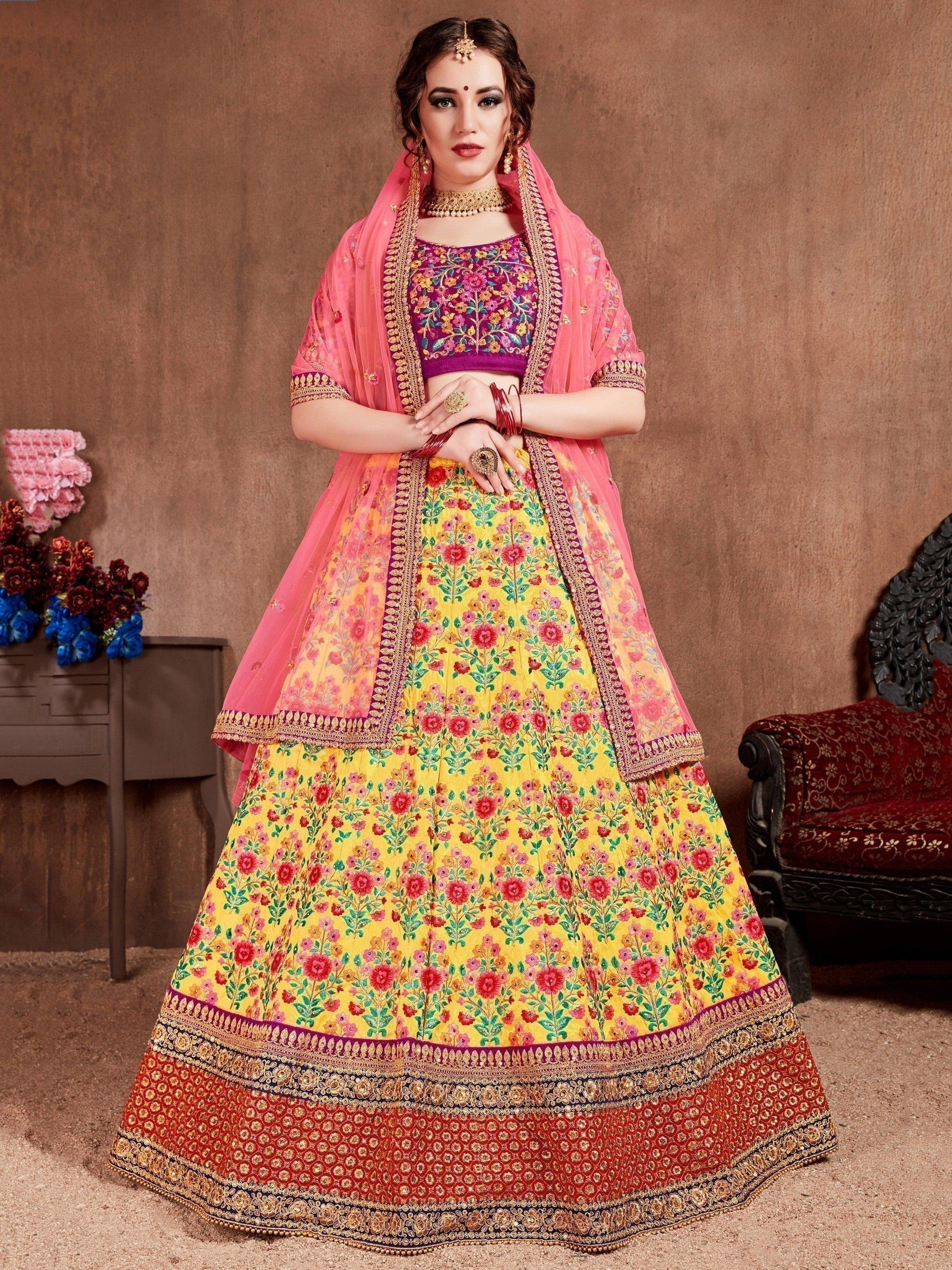 • Our "stunning lovely yellow colored bridal wear embroidered lehenga choli" is a must-have addition to your ethnic wear collection. With its timeless elegance and intricate embellishments, this ensemble will make you feel like a true queen on your special day.