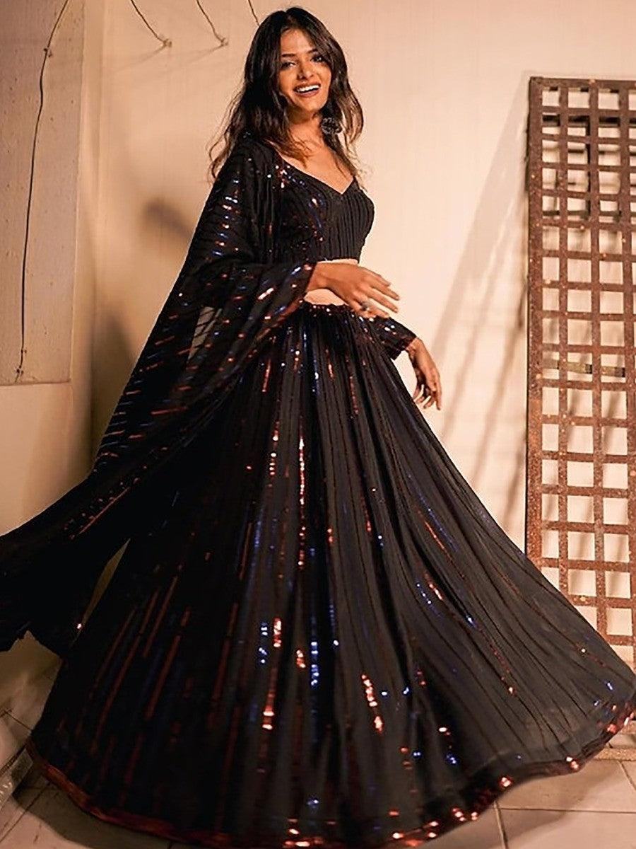 Magnetic Black Sequins Georgette Lehenga Choli With Dupatta