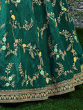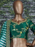 • Elevate your bridal look with this marvelous green color embroidered lehenga choli. Made from luxurious art mulbury silk material with intricate dori, zari, thread, and glitter sequins embroidery work.