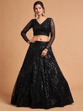 Marvelous Black Sequins Embroidered Net Party Wear Lehenga Choli