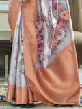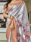 Marvelous Grey Floral Printed Silk Reception Wear Saree With Blouse