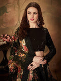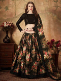Mesmerizing Black Floral Print Organza Silk Wedding Lehenga Choli