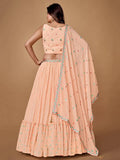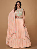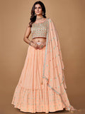 Pretty Peach Embroidered Georgette Reception Wear Lehenga Choli
