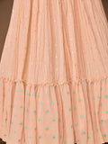 • Immerse yourself in the sun-dappled beauty of this amazing peach color lehenga created with georgette material developed with sequins work, thread embroidery, and ruffle work.