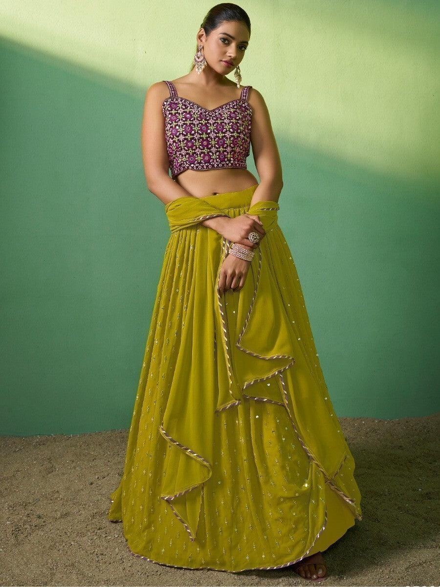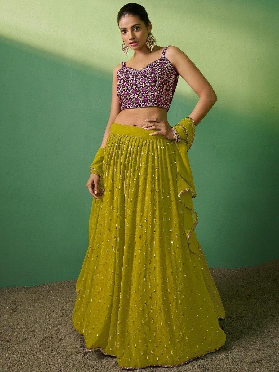 Radiant Green Embroidered Georgette Sangeet Wear Lehenga Choli