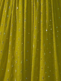 • The lehenga is made from green georgette material and is adorned with sequin and embroidered work, giving it a glamorous and radiant look. The matching velvet unstitched blouse features intricate sequin work, mirror work, and embroidered details, adding a touch of elegance.