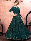 Ravishing Green Georgette Sequins Party Wear Anarkali Gown