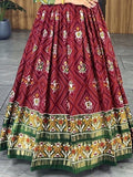 • Introducing our stunning "ravishing maroon bandhani printed silk function wear gown", perfect for all your festive occasions. Crafted from soft cotton silk material, this gown features exquisite patola and bandhani prints with rich foil work on the border. The elegant maroon color adds a touch of sophistication to your ensemble, making you stand out at any event.