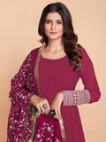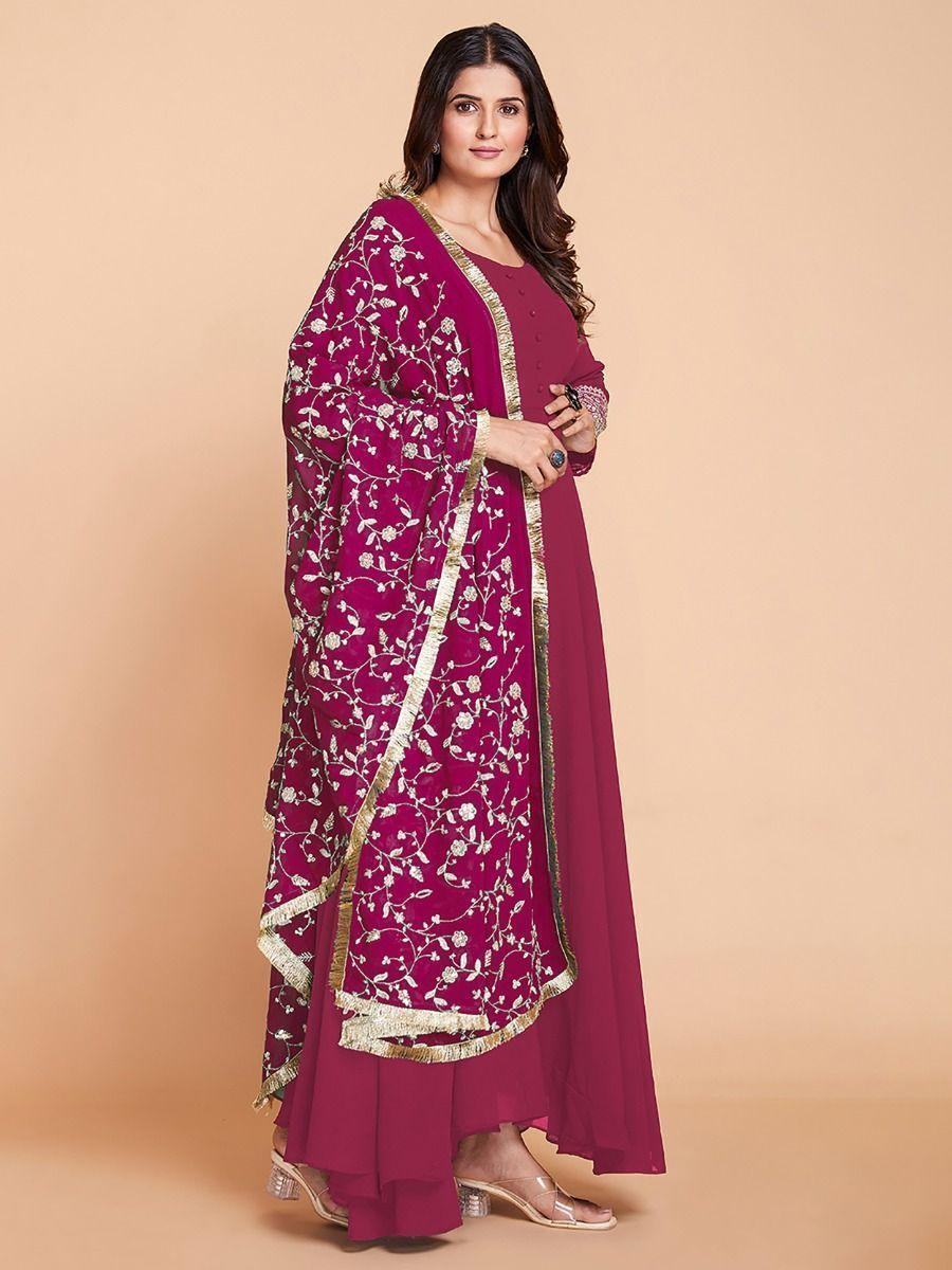• The gown comes with matching bottoms pants made from real micro cotton material in a similar color, as well as a georgette dupatta in the same beautiful shade of pink.