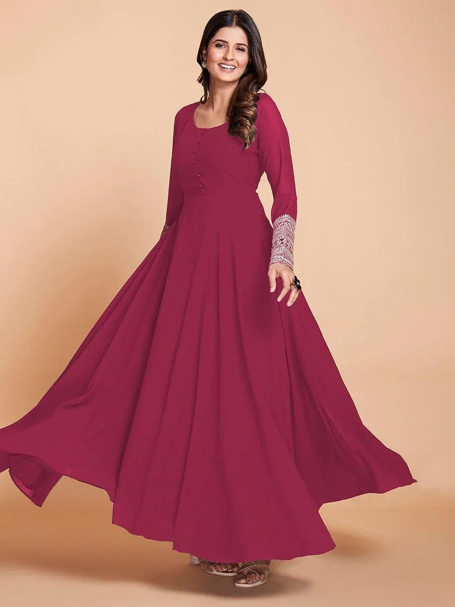 • Made with high-quality georgette fabric, this gown is not only comfortable to wear but also elegant and eye-catching.