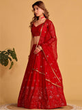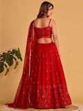 Spectacular Red Sequins Georgette Reception Wear Lehenga Choli