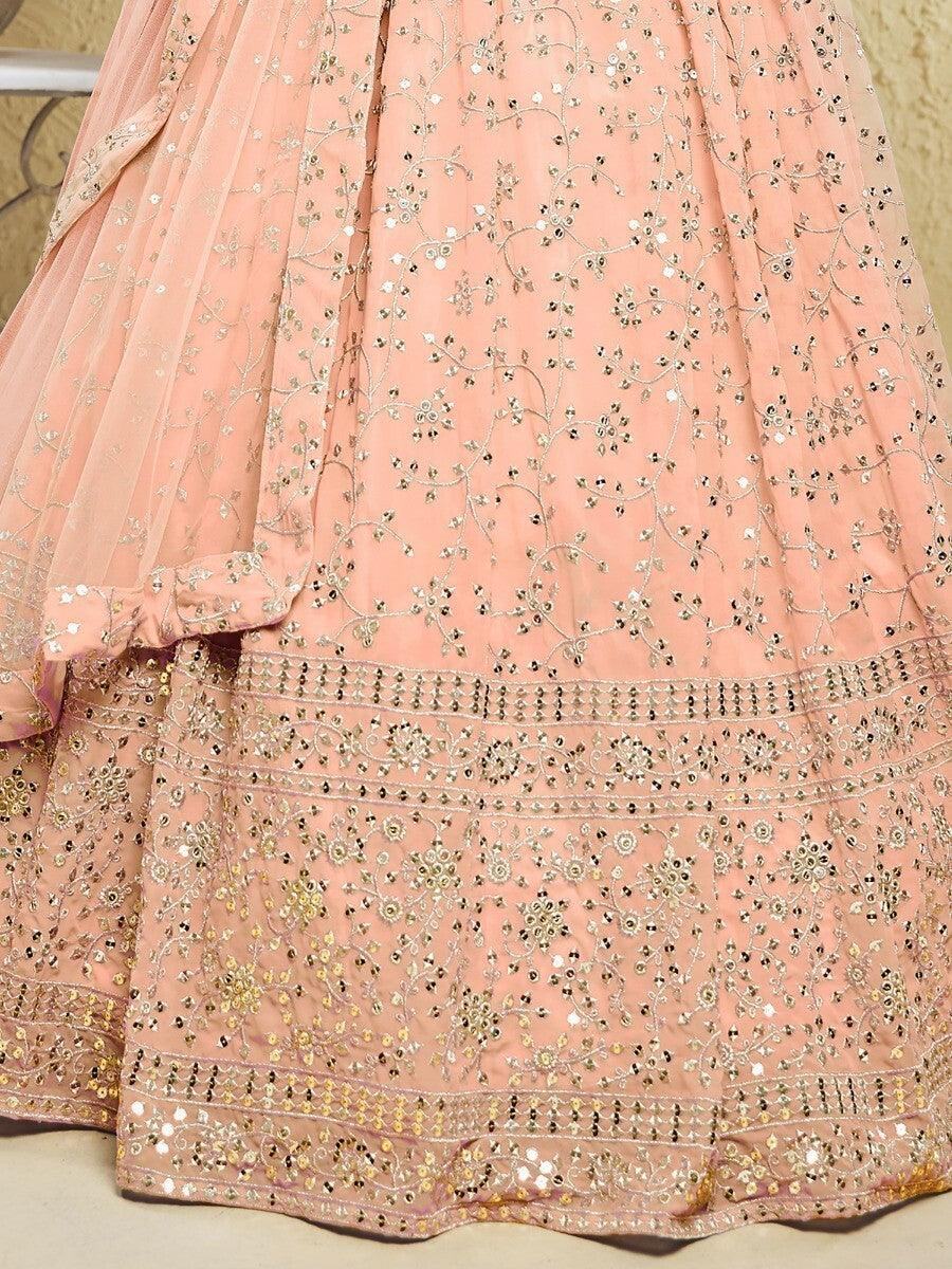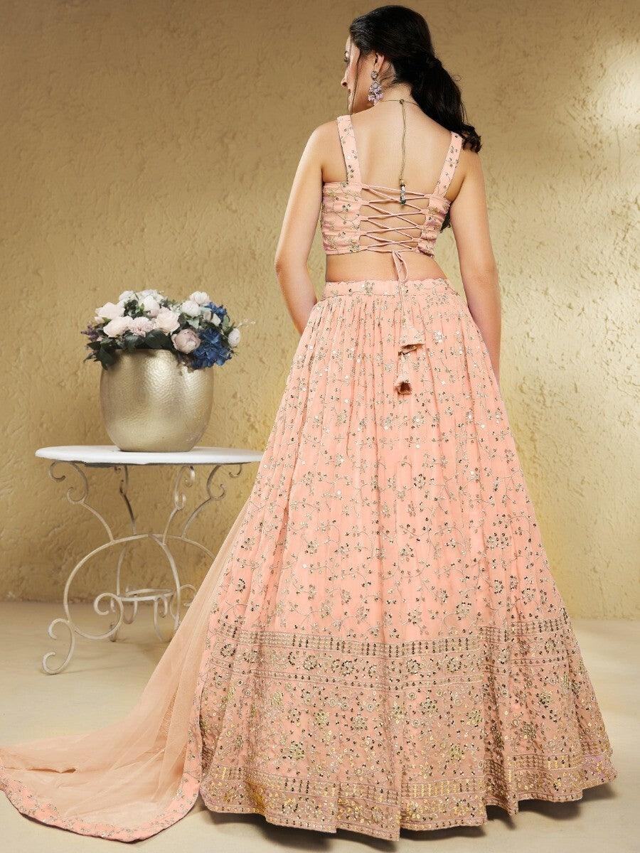 • Pair it with designer accessories to complete your stylish ensemble. Shop the superb light pink sequins georgette lehenga choli with dupatta online at Zeel Clothing and enjoy a premium-quality product.