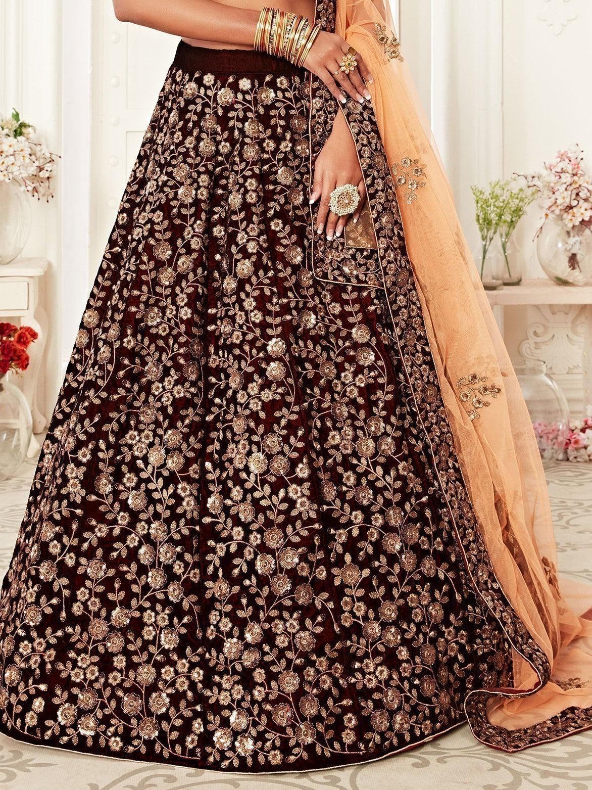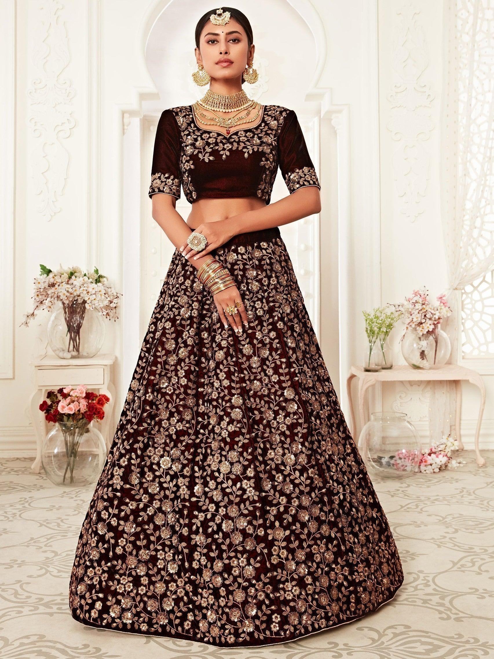 Trending Maroon Embroidered Velvet Bridal Lehenga Choli