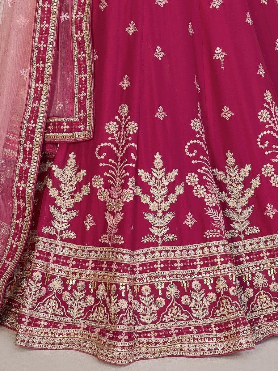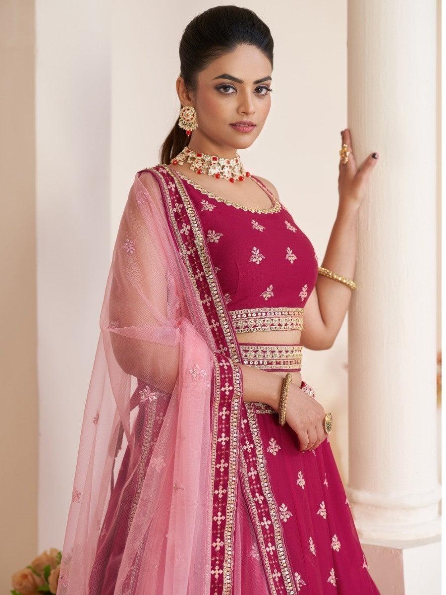 • Crafted from high-quality georgette fabric, this lehenga choli boasts a beautiful pink color that complements any skin tone. The semi-stitched lehenga can be customized up to 42 inches, allowing for a perfect fit. The length of the lehenga choli can also be adjusted up to 43 inches, ensuring comfort and style.