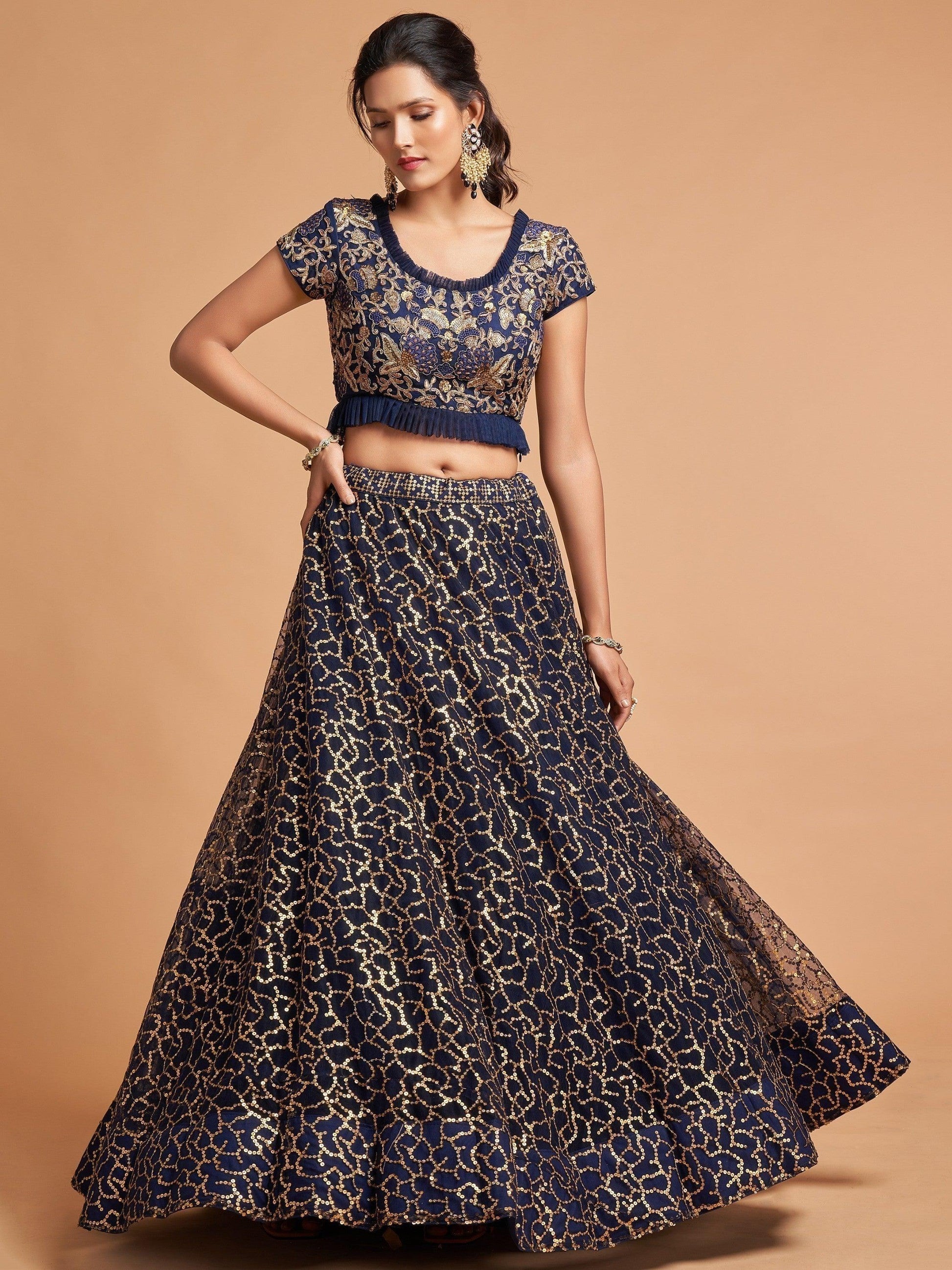 Wonderful Navy Blue Thread Embroidered Net Party Wear Lehenga Choli